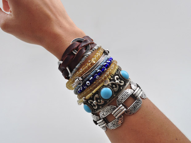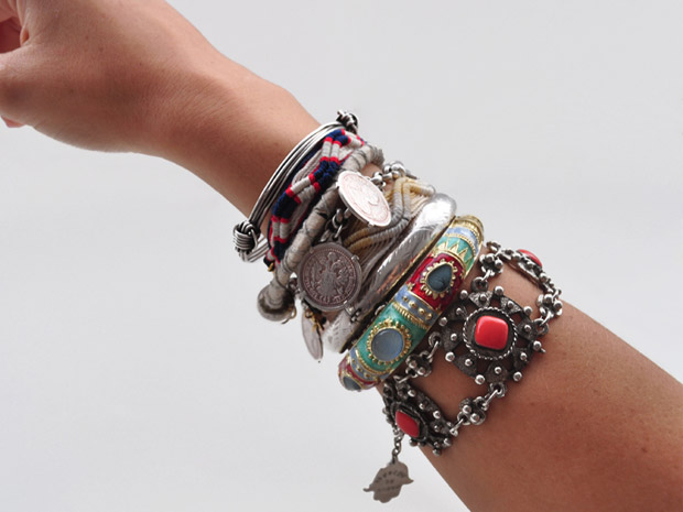 Com o mix de pulseiras, ela evolui para uma combinação mais ousada, misturando braceletes, correntes, prateado, dourado e artesanal, no maior estilo ciganismo. E, ao contrário dos que muitos pensam, essa mistura não é feita ao acaso. É preciso pensar no seu mix para não errar na mão. E hoje, vou ensinar a combinar suas pulseiras e criar diversas misturas para se jogar na tendência!