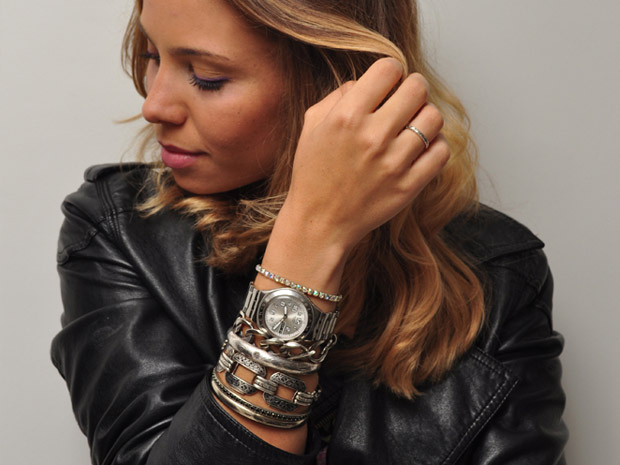 Relógio também pode ser misturado às pulseiras e braceletes.